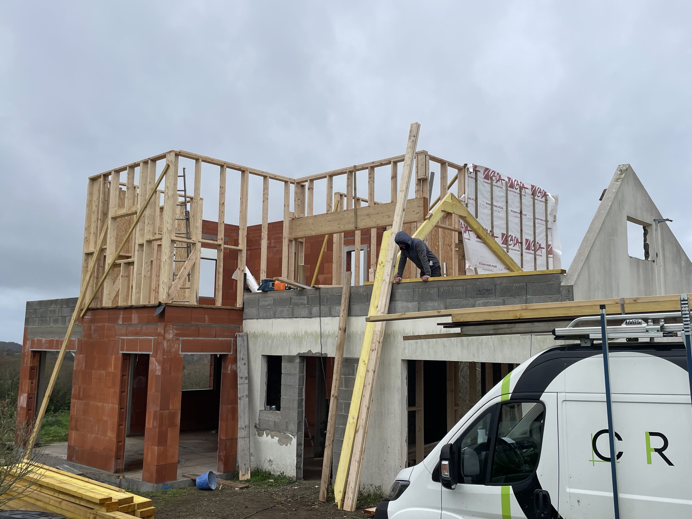 - Chantier propre et rapide : La préfabrication de l’ossature dans nos ateliers a permis de mettre l’étage "hors d’eau" en quelques jours seulement, protégeant ainsi l'habitation existante des intempéries.